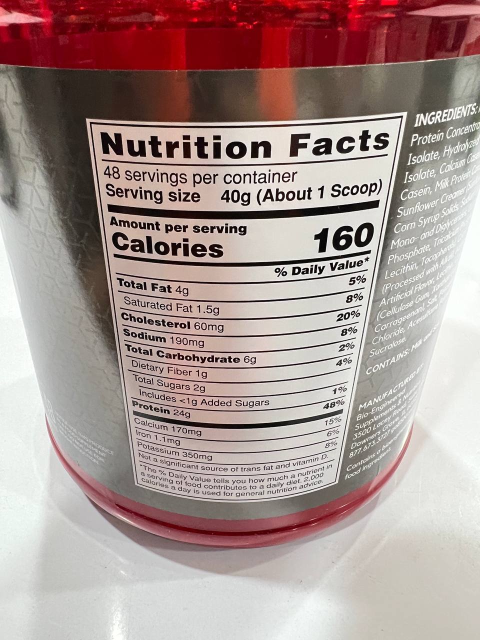 آرژنین آلفا کتوگلوتارات مای پروتئین یا ای ای کی جی حاوی 1 گرم آرژنین آلفا کتوگلوتارات در هر سروینگ می باشد.